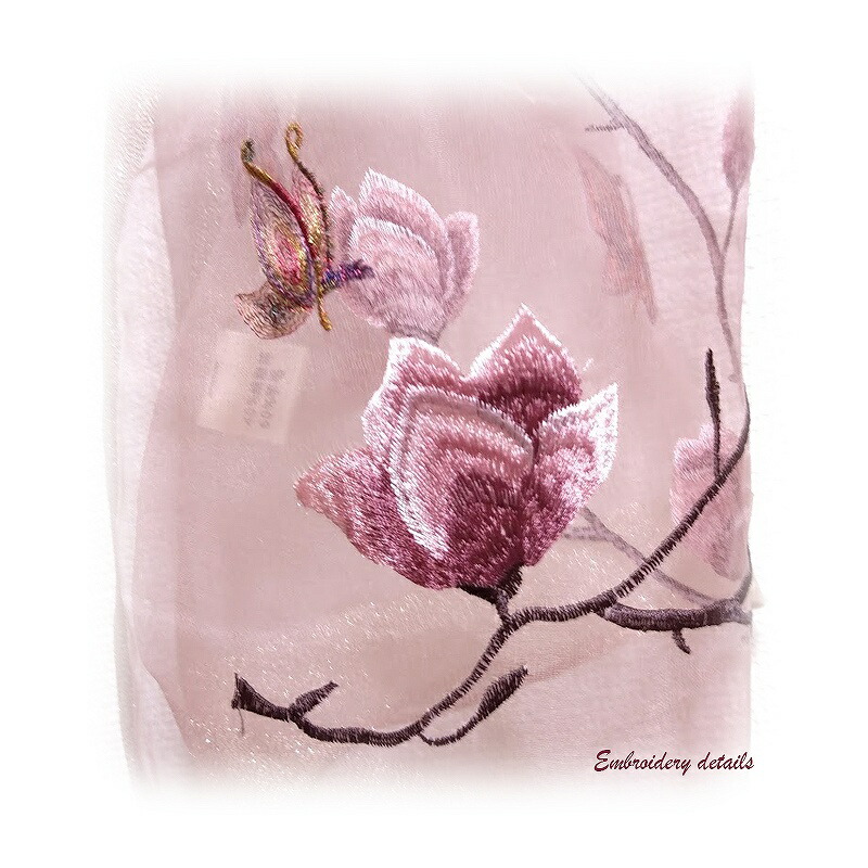 ポイント4倍 ストール 花柄と蝶の刺繍ウールシルク大判ストール レディース 春 夏 春夏 秋 冬 秋冬 スカーフ ストール ショール 結婚式 ラメ ギフト プレゼント Uv 冷房対策 ピンク ホワイト 白 ベージュ ブラウン レッド 赤 ブラック 黒 Uvケア 母の日 敬老の日 完全初回